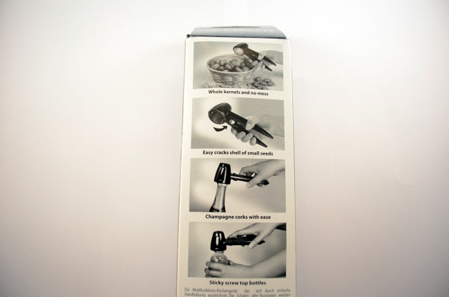 Ein sehr seniorenfreundlicher Nussknacker, der sich auch zum leichten Öffnen von Plastikdrehverschlüssen (z.B. bei Mineralflaschen, die unter Druck stehen) oder von Sektflaschen eignet.